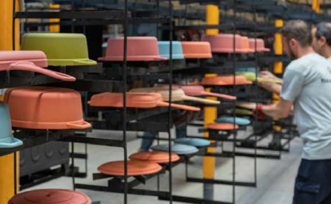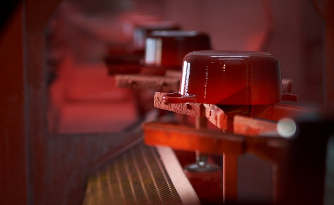 Kosi so poškropljeni z minimalno dvema slojema emajla, ki jih z dodajanjem barve zaščiti znotraj in zunaj. Nato se premaknejo po proizvodni liniji za ročno končno obdelavo.